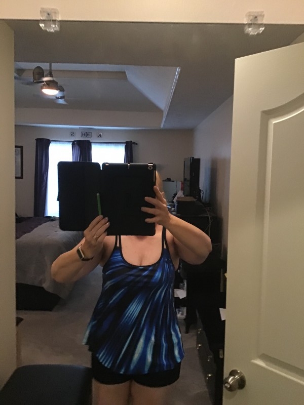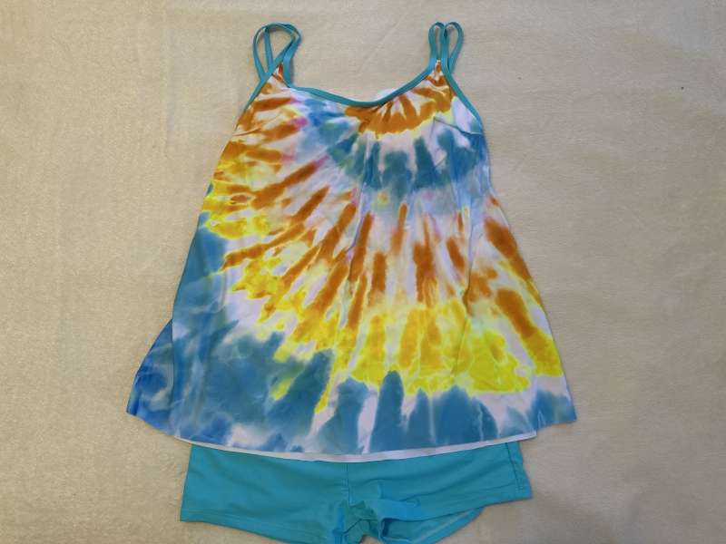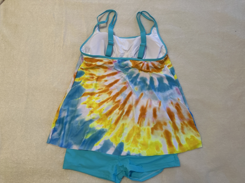Patchwork Ombre Cyan Double Straps Tankini Top