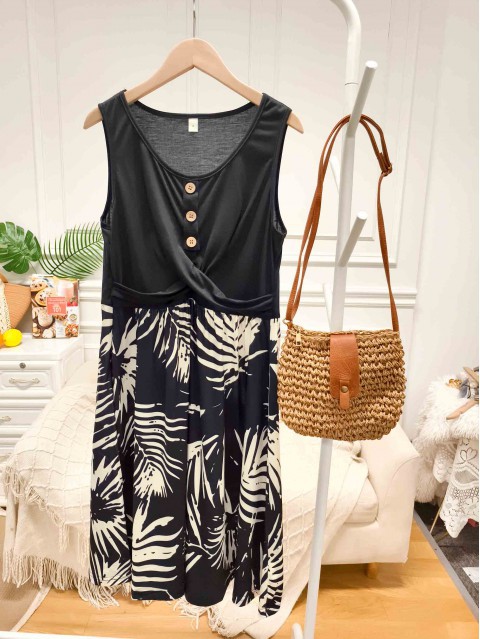 Coral Tummy Coverage Tribal Print Sleeveless Round Neck Dress