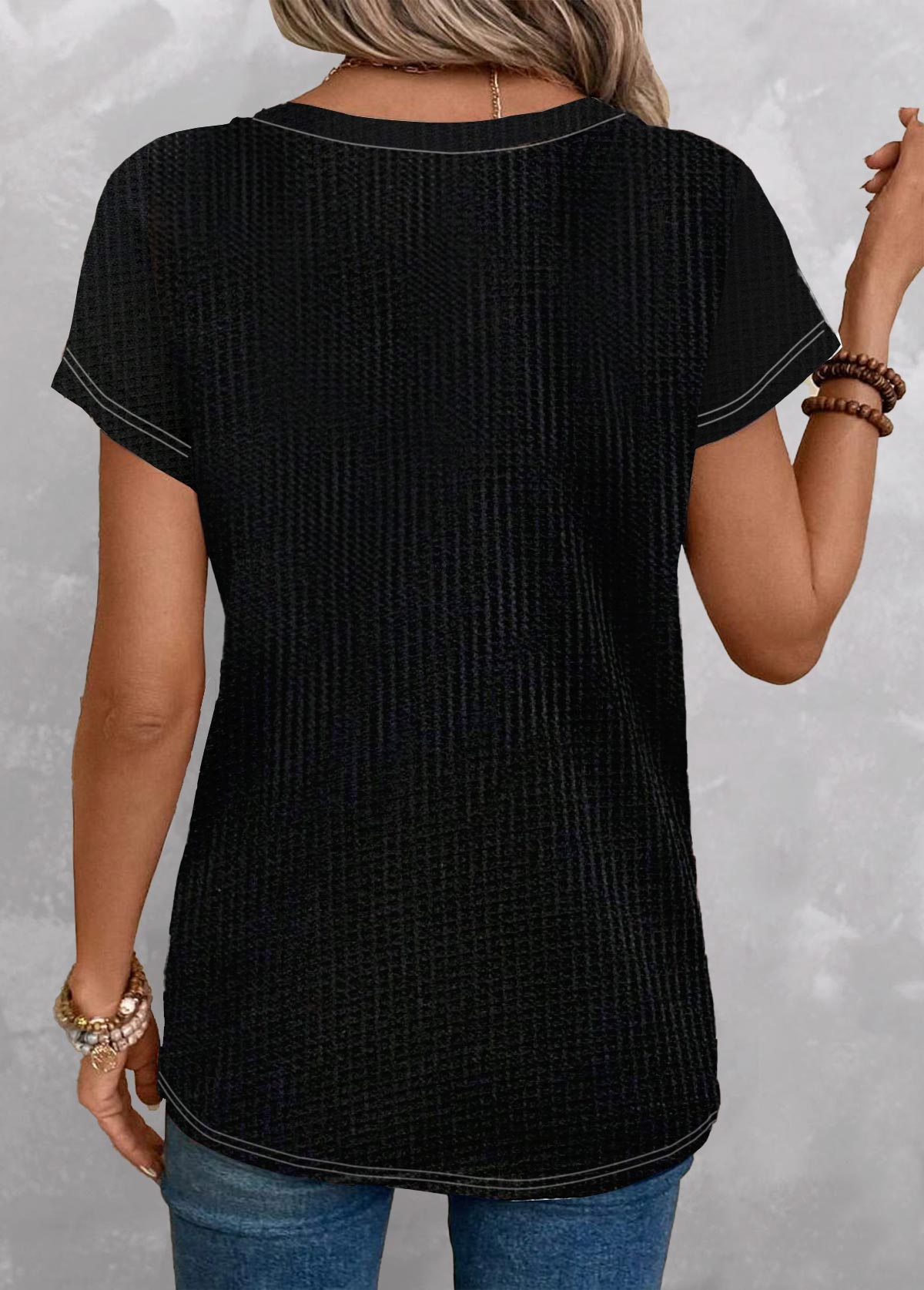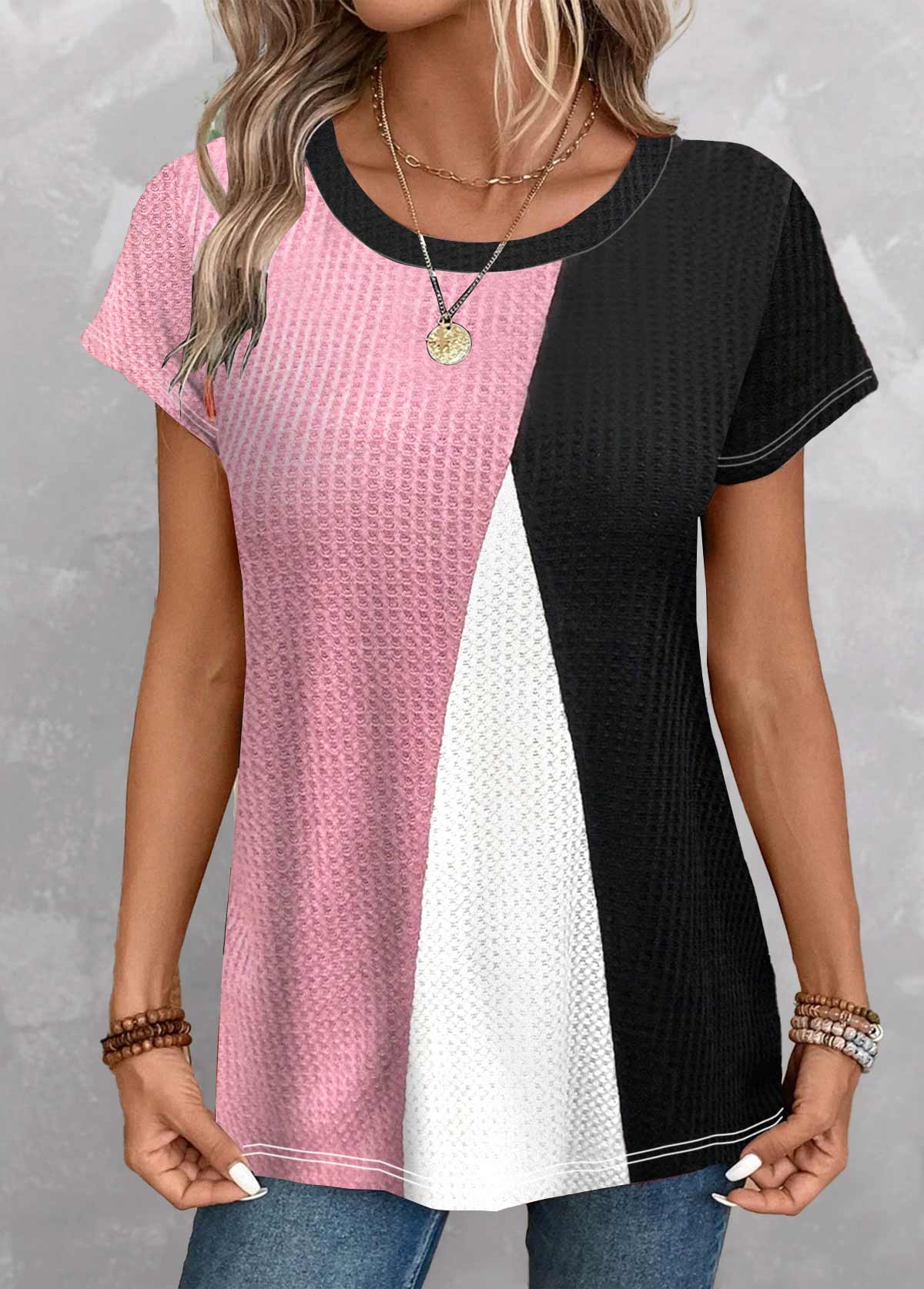 SALEMODLILY® Black Patchwork Geometric Print Short Sleeve T Shirt