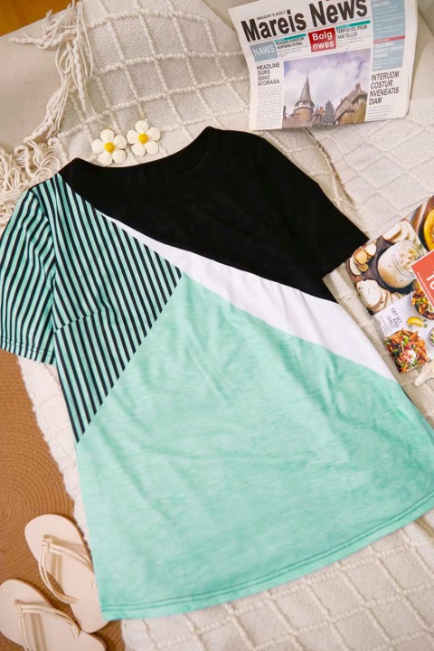 Black Tummy Coverage Dazzle Colorful Print T Shirt