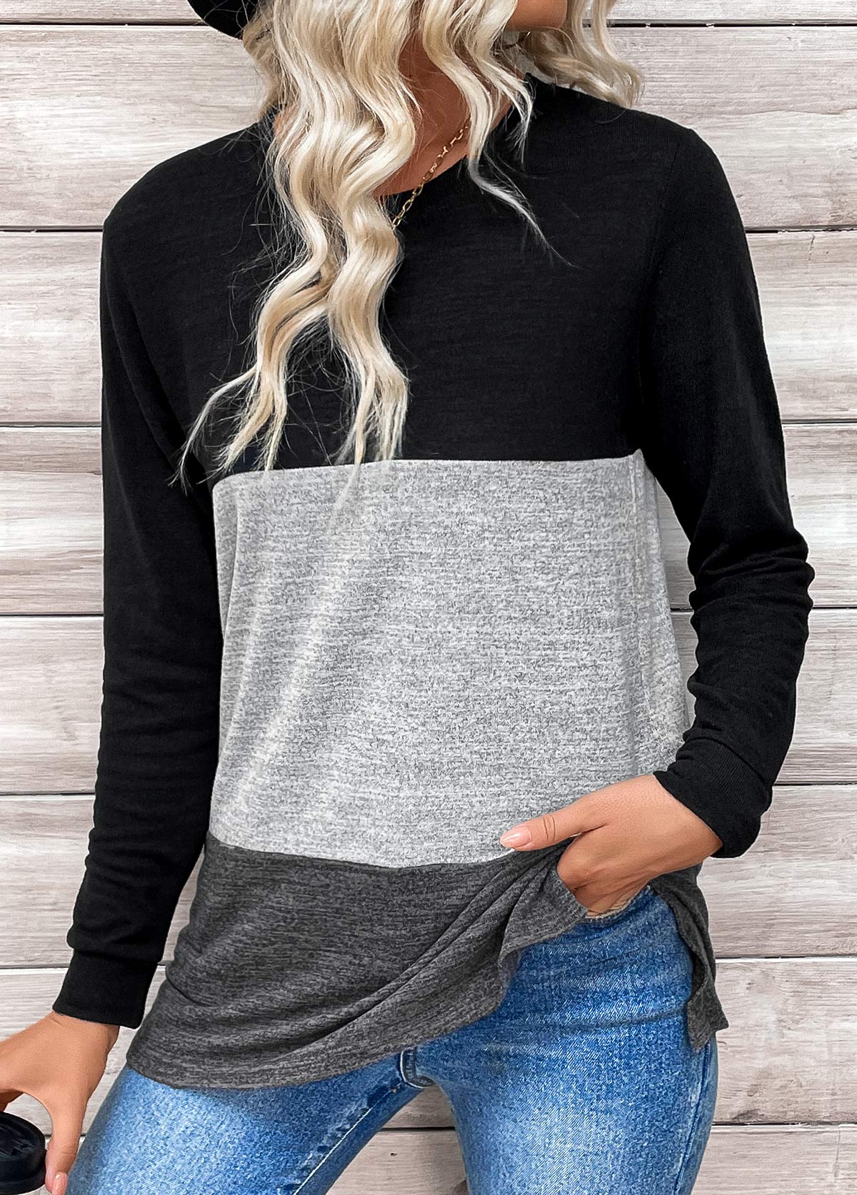 Dark Coffee Tummy Coverage Plaid Long Sleeve Sweatshirt