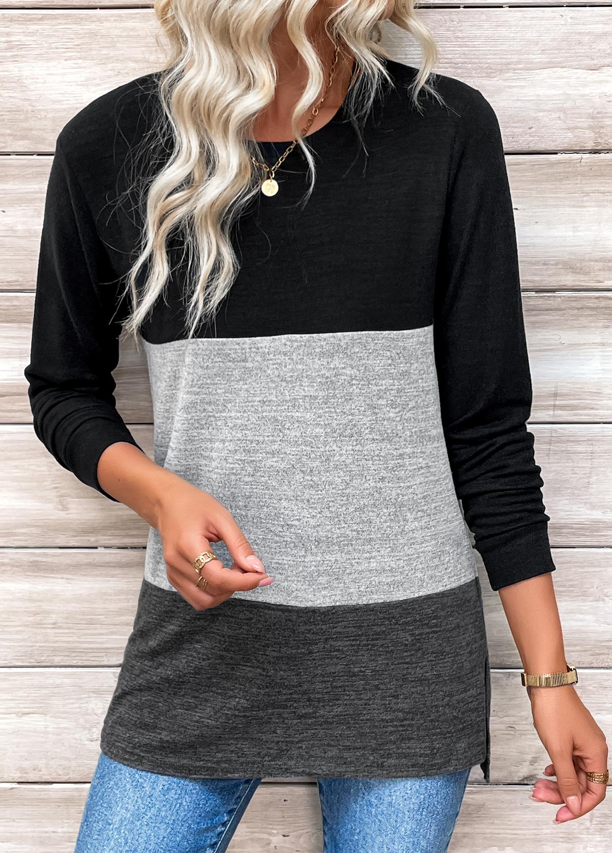Multi Color Striped Long Sleeve Round Neck T Shirt
