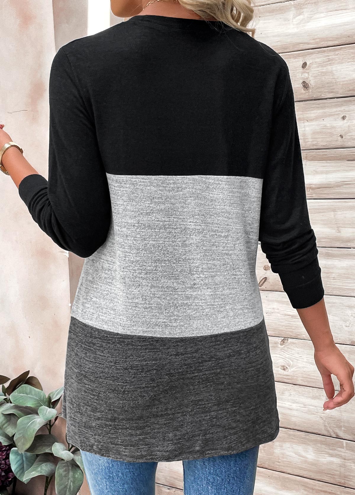 Light Coffee Patchwork Geometric Print Long Sleeve T Shirt