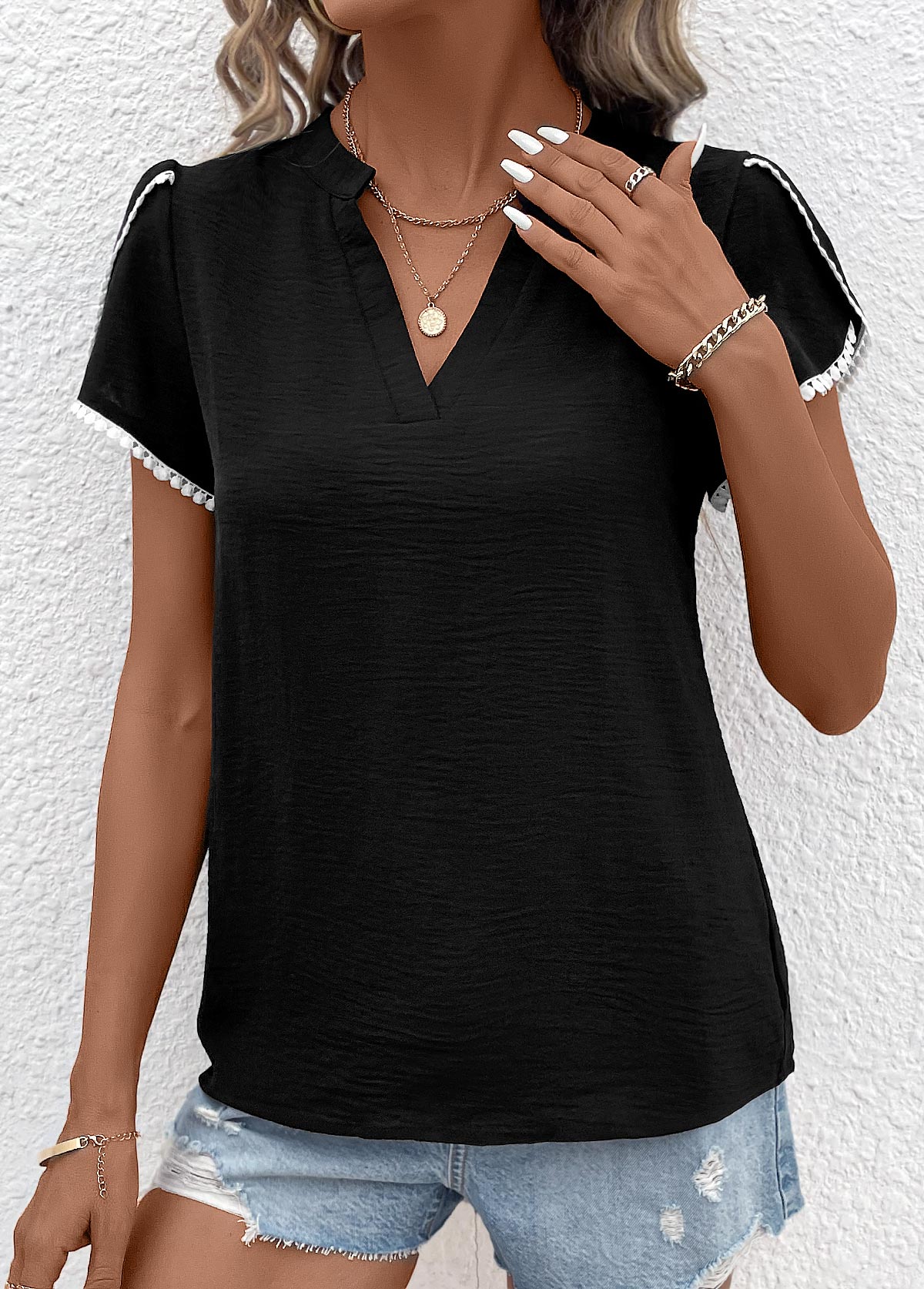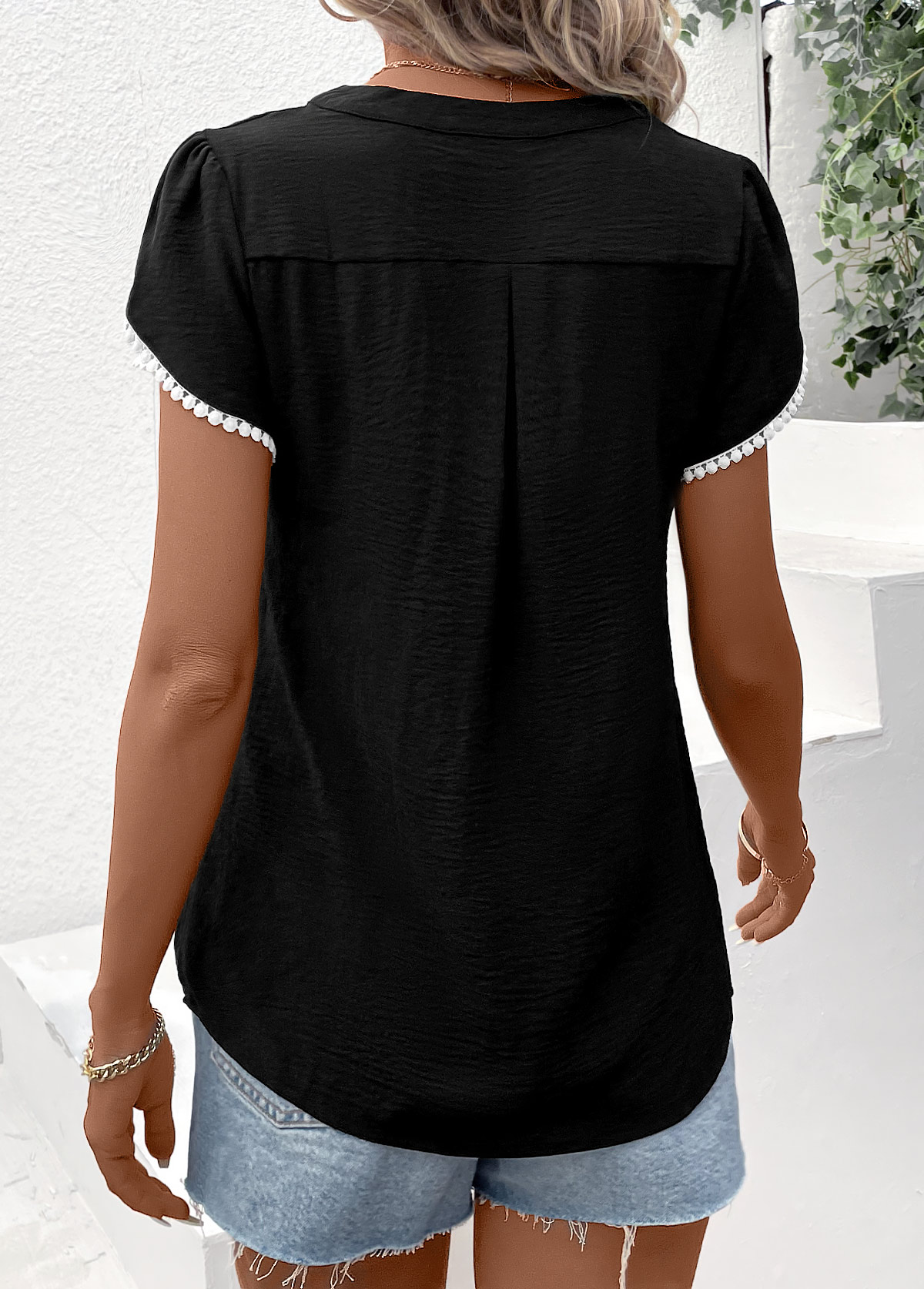 Navy Lace Short Sleeve Tie Collar T Shirt