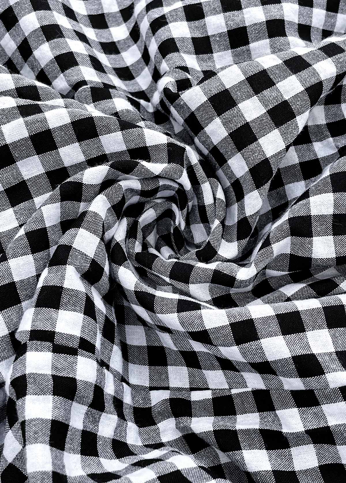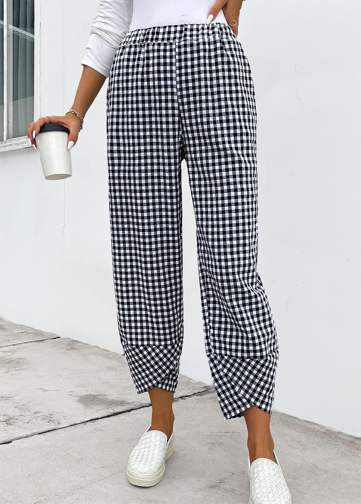 Black Plaid Wide Leg Elastic Waist High Waisted Pants