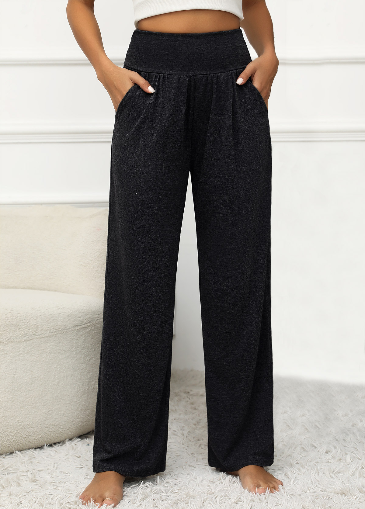 women's clothes / Bottoms / Pants  /  Black Pocket Elastic Waist High Waisted Pants