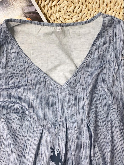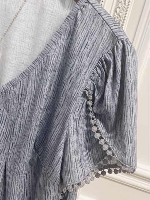 Dusty Purple Patchwork 3/4 Sleeve Split Neck Blouse