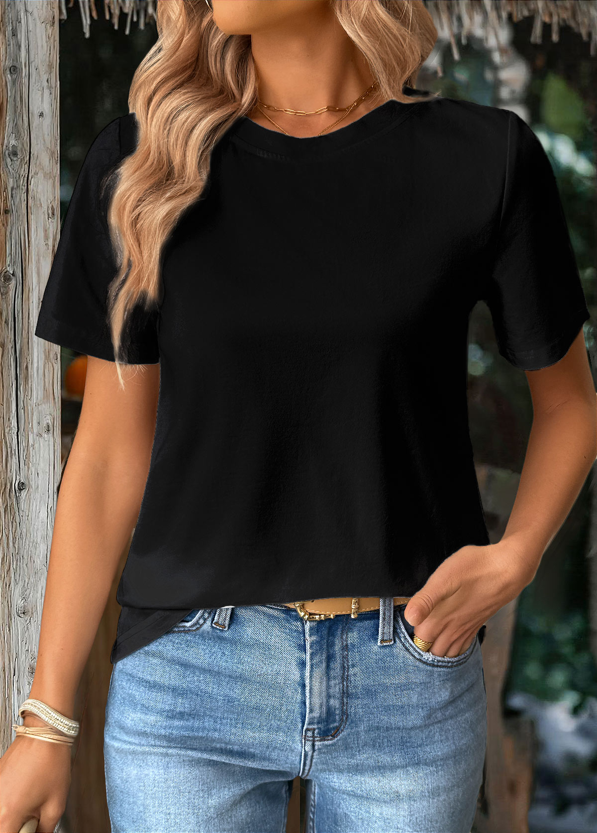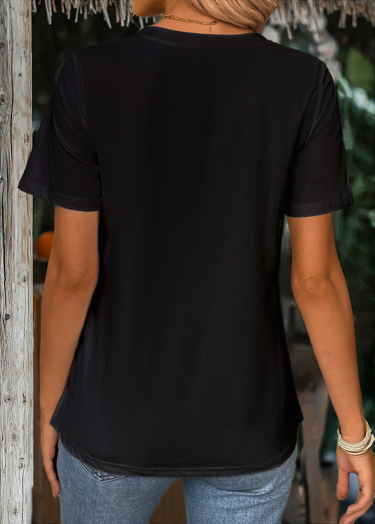 White Curved Hem Short Sleeve Split Neck T Shirt
