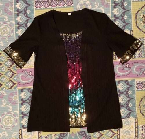 Black Tummy Coverage Dazzle Colorful Print T Shirt