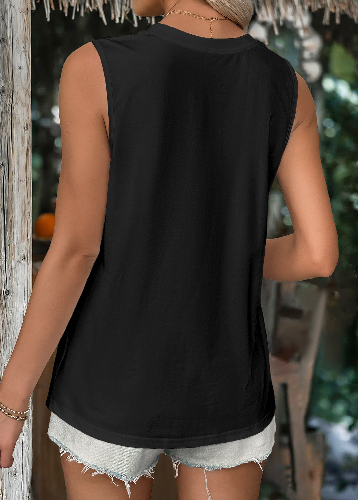 women's clothes / Tops / Tank Tops & Camis  /  Black Sleeveless Round Neck Tank Top