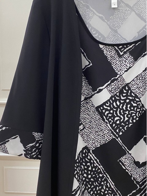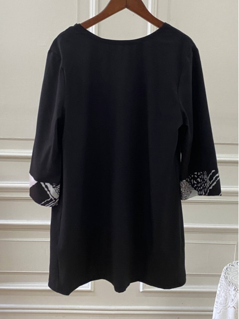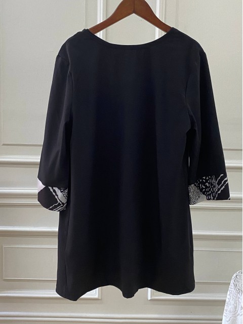 Black Tuck Stitch Geometric Print Long Sleeve Blouse