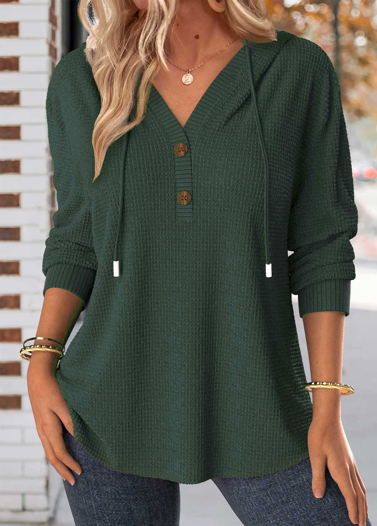 women's clothes / Tops / Sweatshirts&Hoodies  /  Blackish Green Button Long Sleeve Hoodie