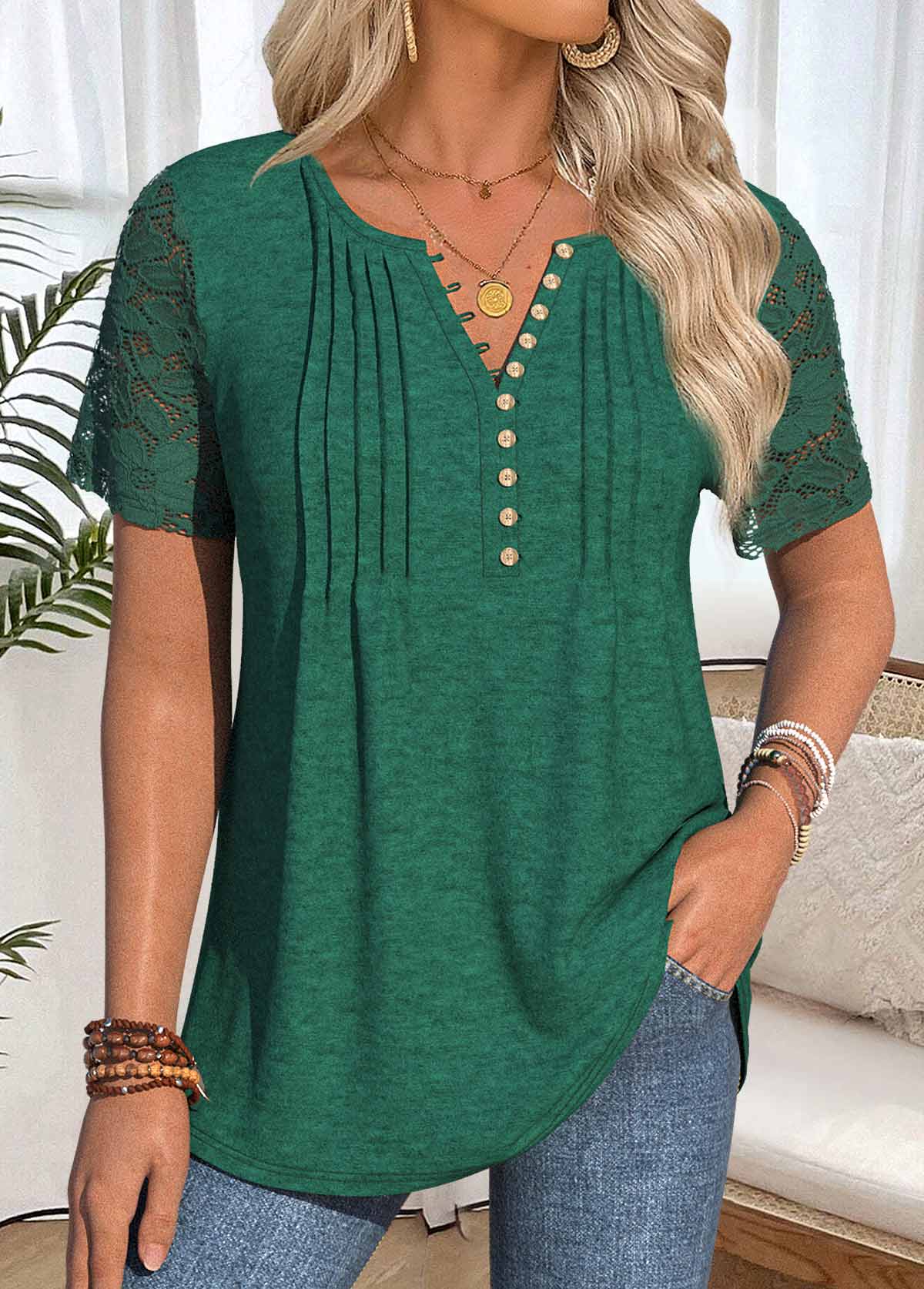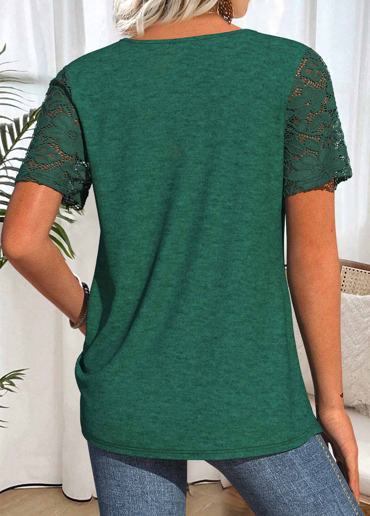 Navy Lace Short Sleeve Tie Collar T Shirt