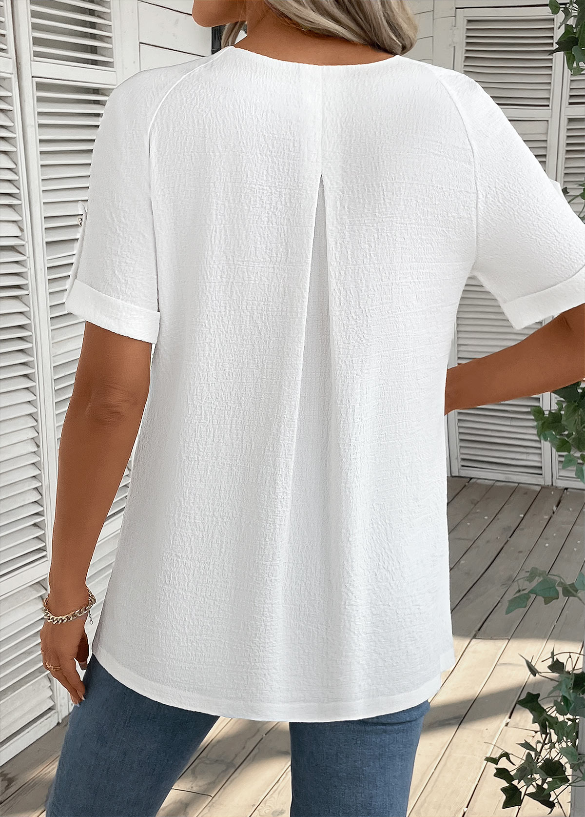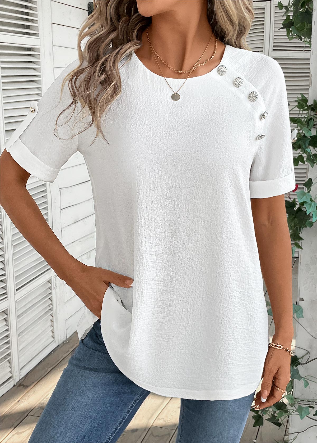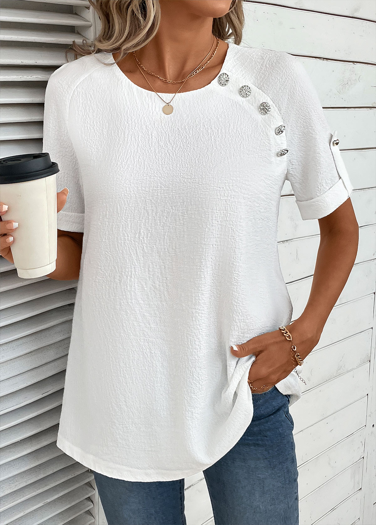 women's clothes / Tops / Blouses  /  Bleaching White Button Short Sleeve Round Neck Blouse