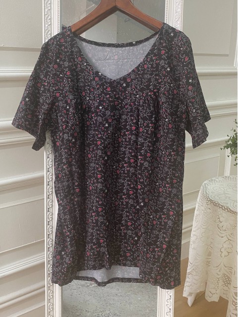 Black Tuck Stitch Geometric Print Long Sleeve Blouse