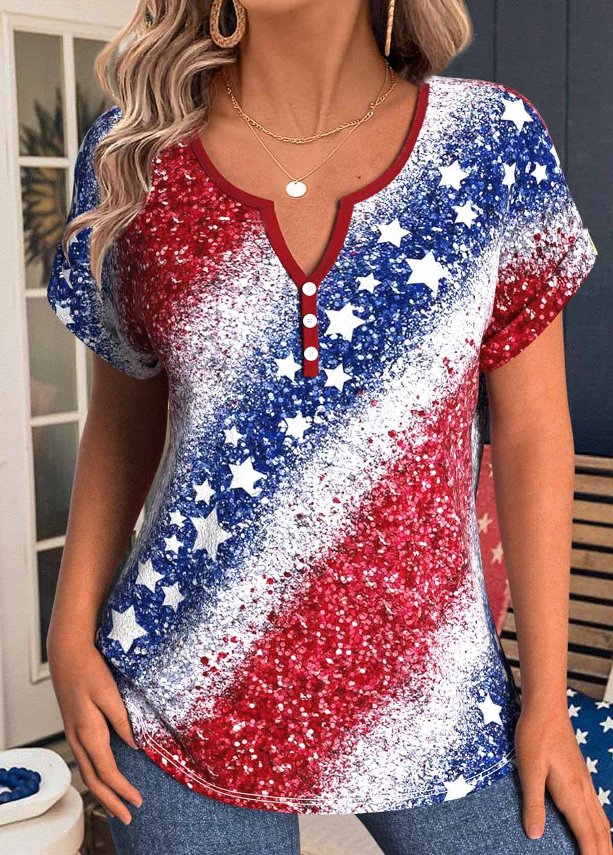White Curved Hem Short Sleeve Split Neck T Shirt