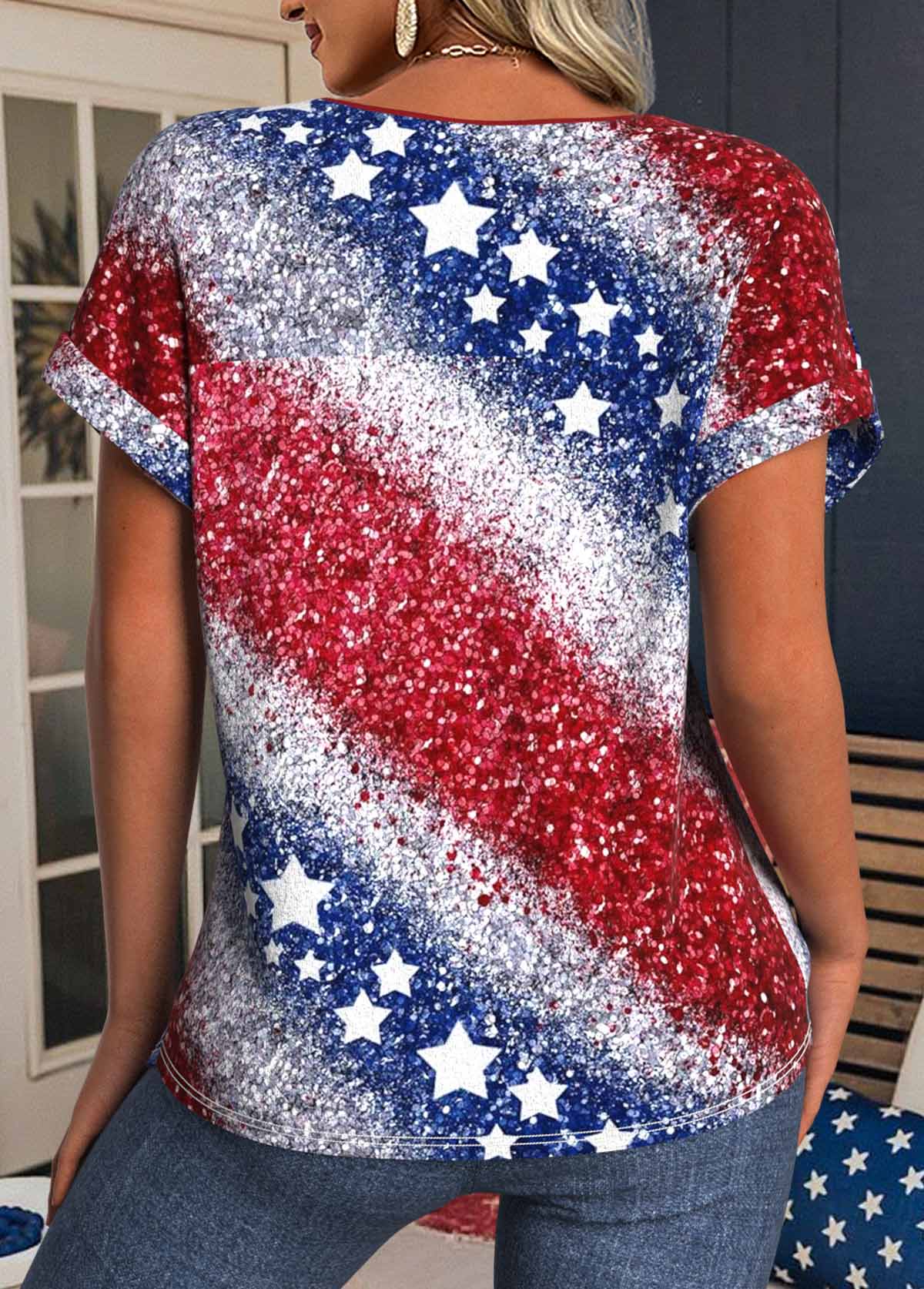 Multi Color Tummy Coverage Geometric Print T Shirt