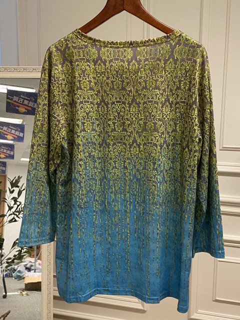 Multi Color Tummy Coverage Ombre Long Sleeve T Shirt