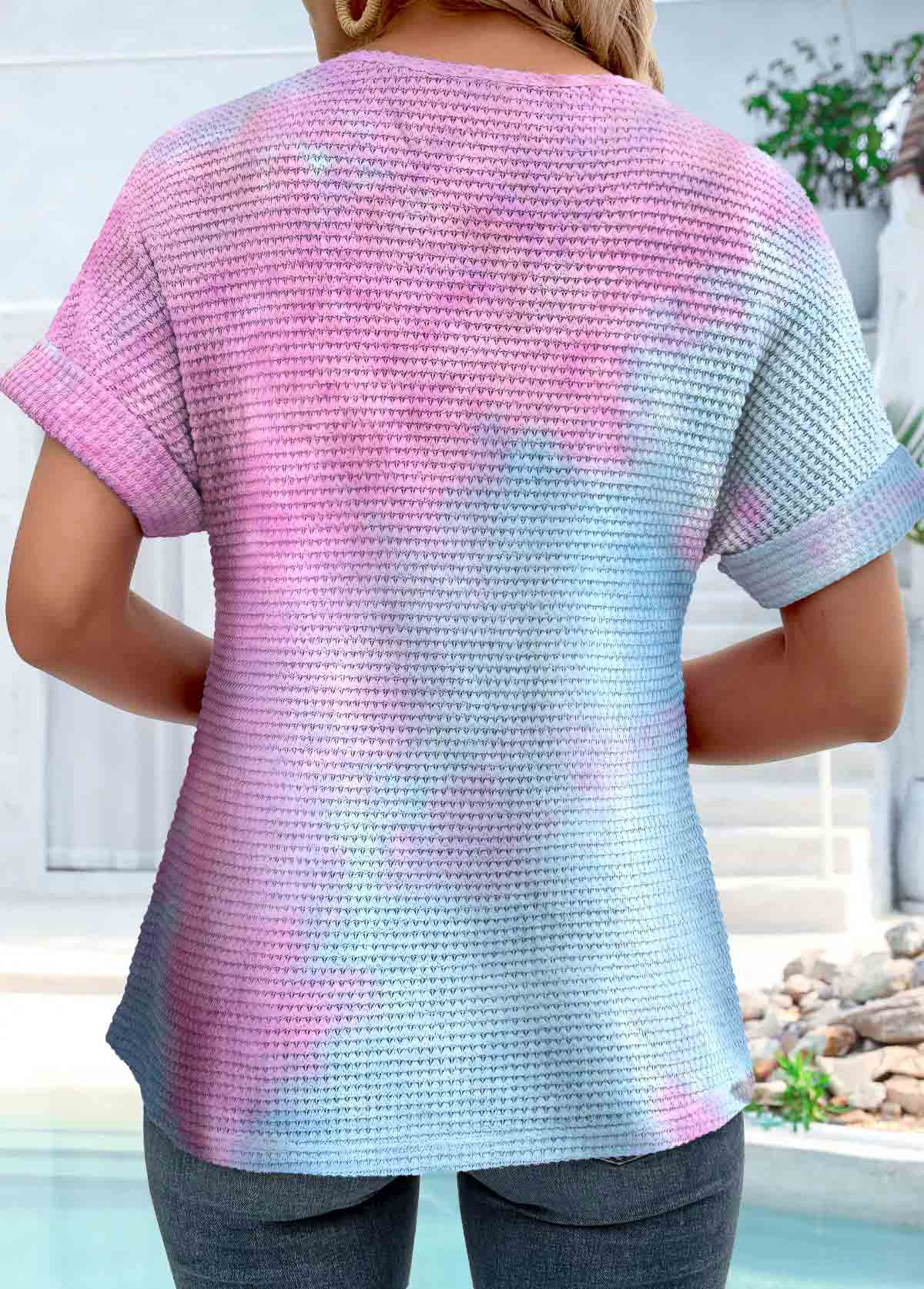 Deep Red Tuck Stitch Ombre Short Sleeve T Shirt