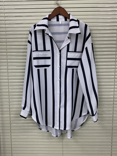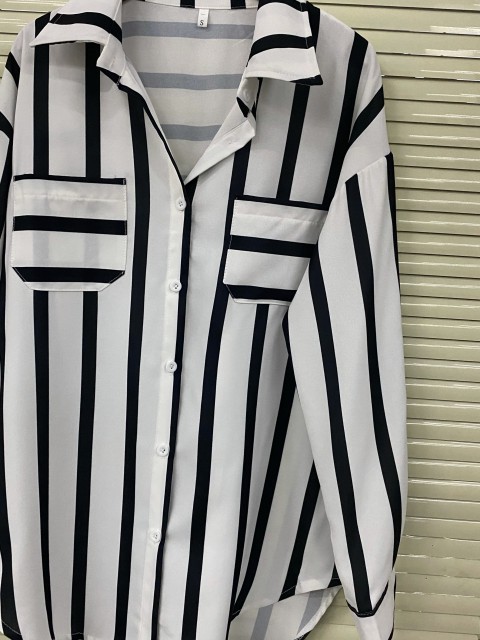 Light Green Button Striped Half Sleeve Blouse