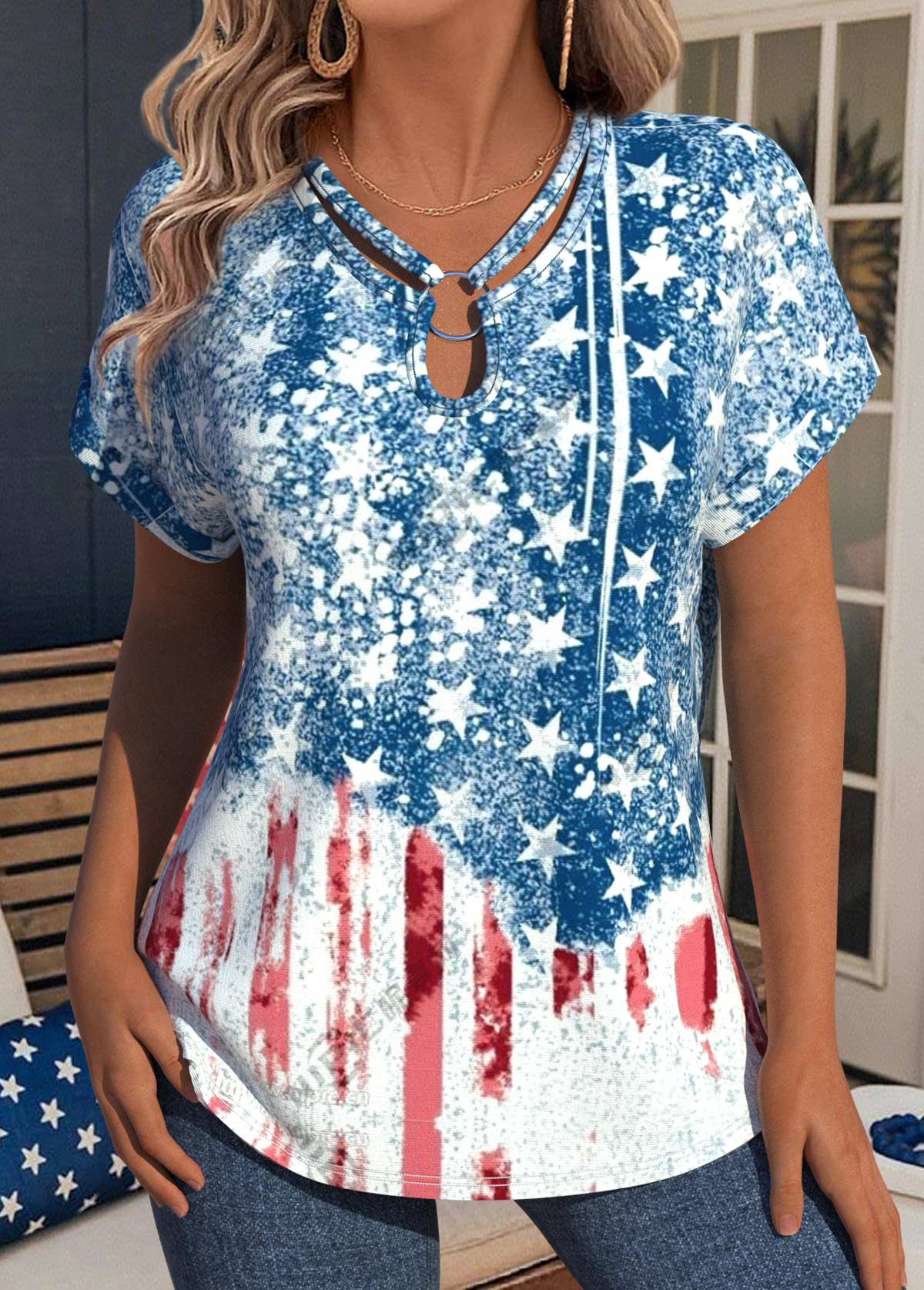 Raw White Geometric Print Twist Short Sleeve T Shirt