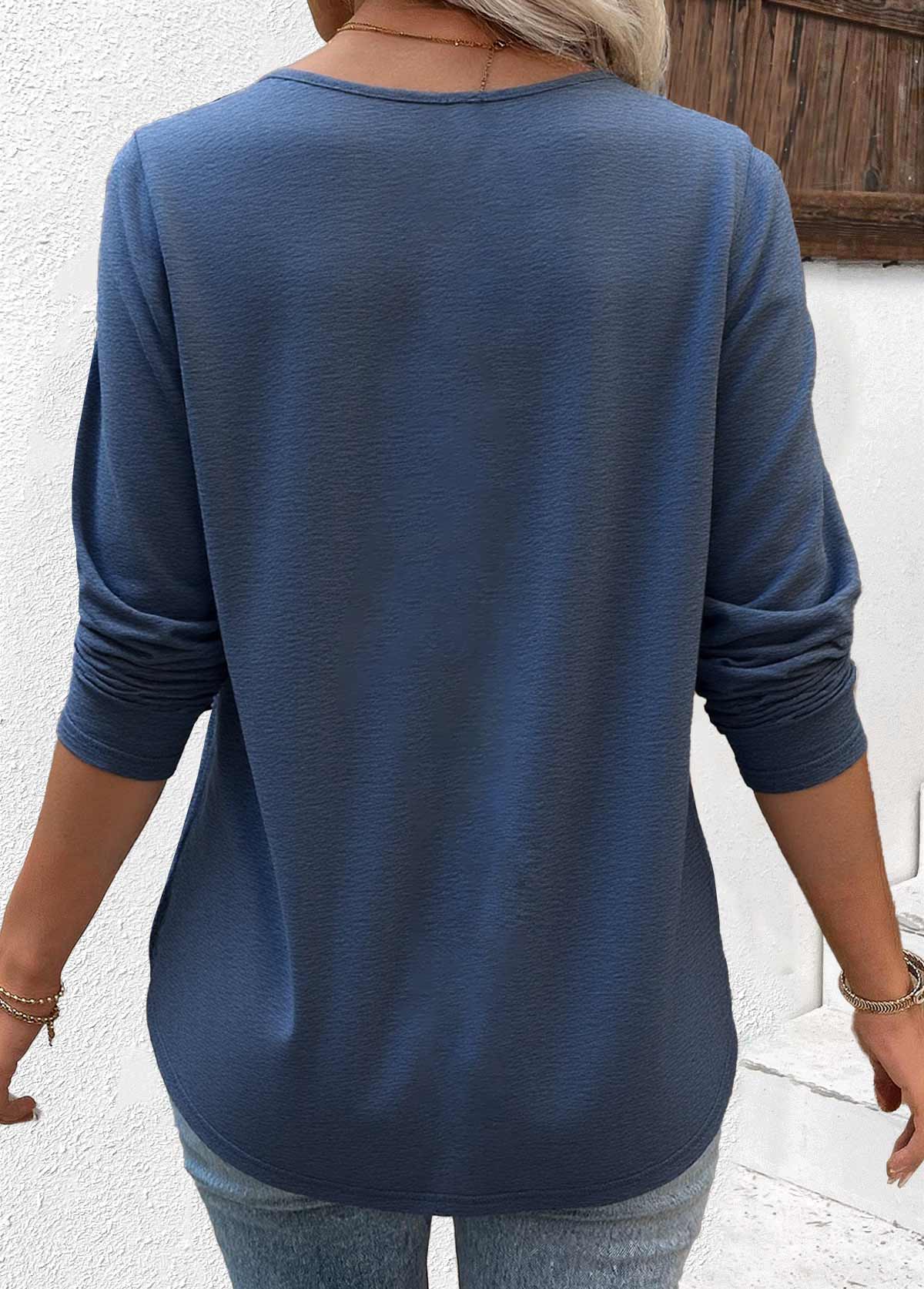 Blue Striped Short Sleeve Split Neck T Shirt
