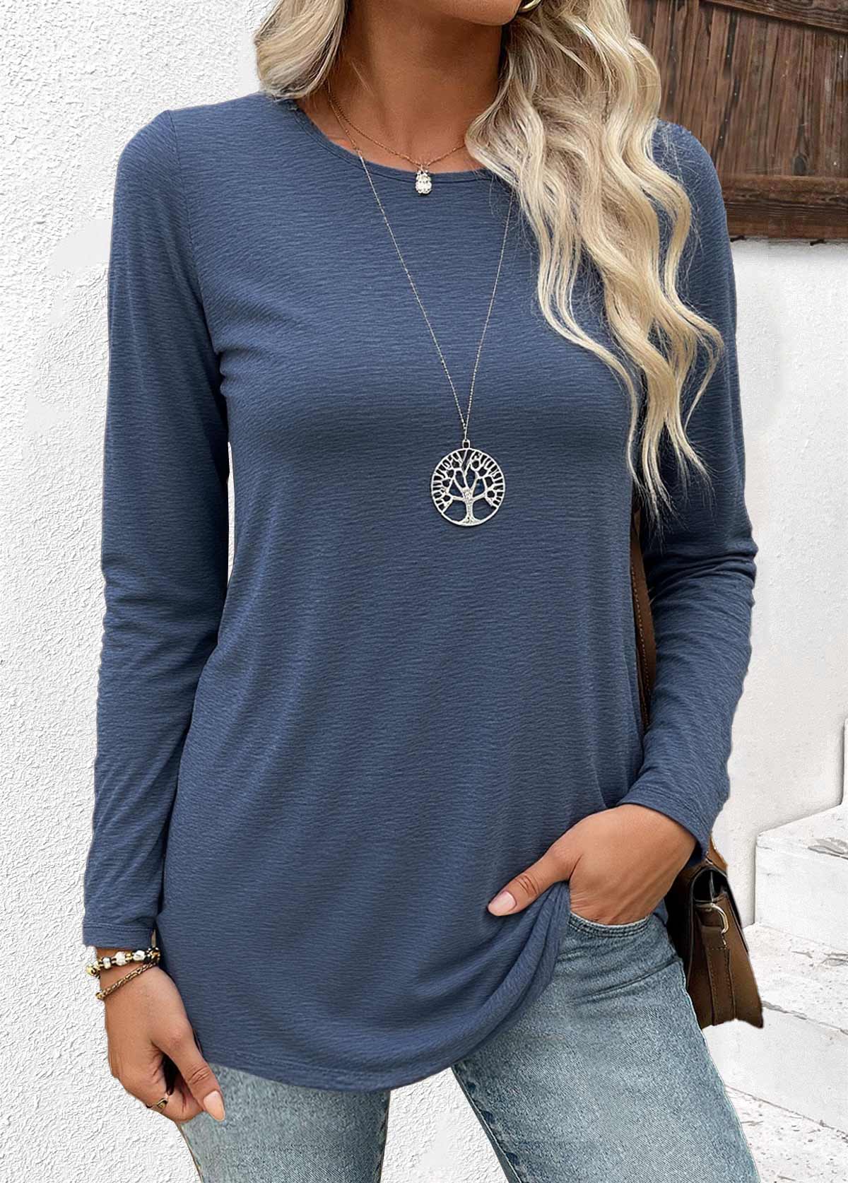 Blue Tummy Coverage Geometric Print T Shirt