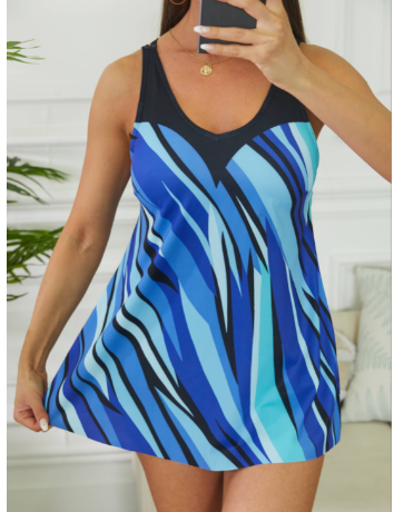 Lightweight Mid Waisted Geometric Print Multi Color Tankini Set