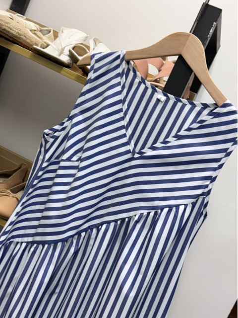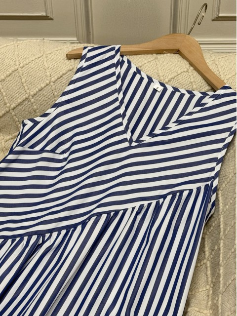 • Blue Patchwork Striped A Line Sleeveless V Neck Dress | thumb picture