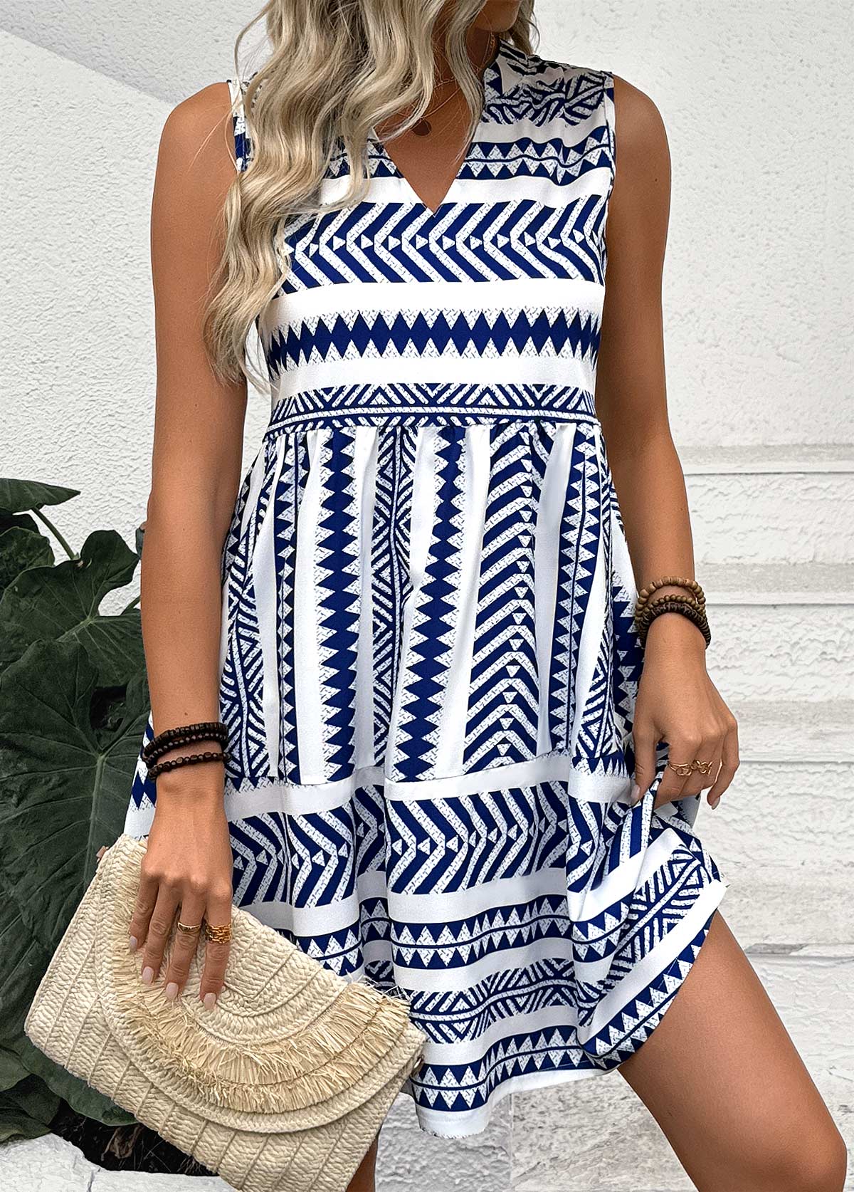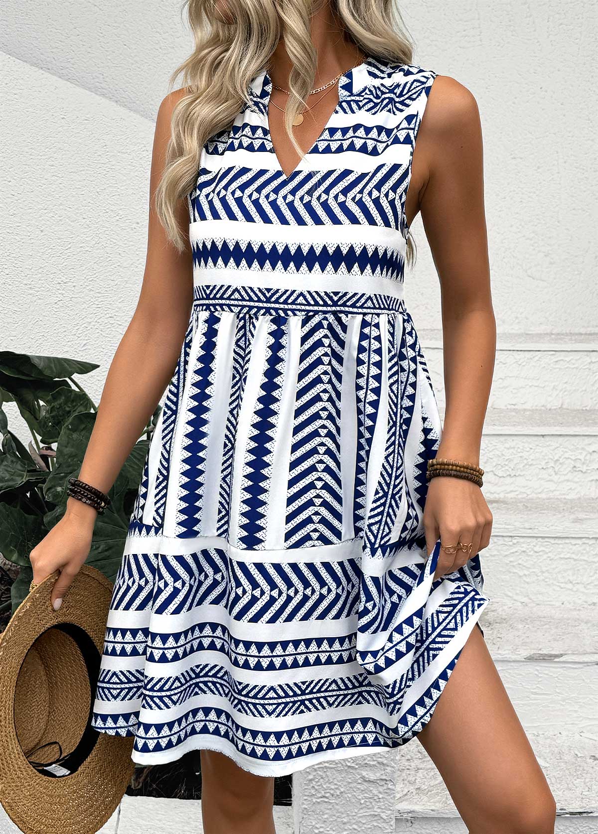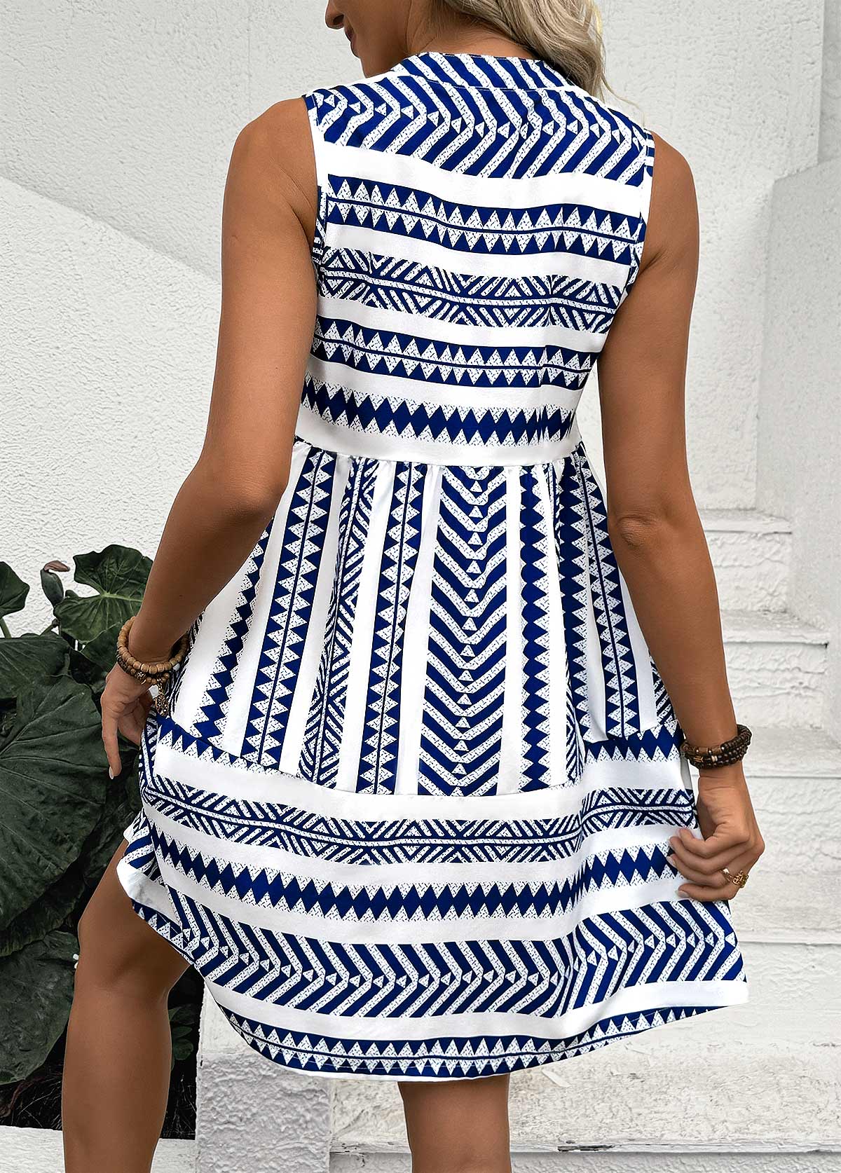 Navy Tummy Coverage Short Sleeveless V Neck Dress