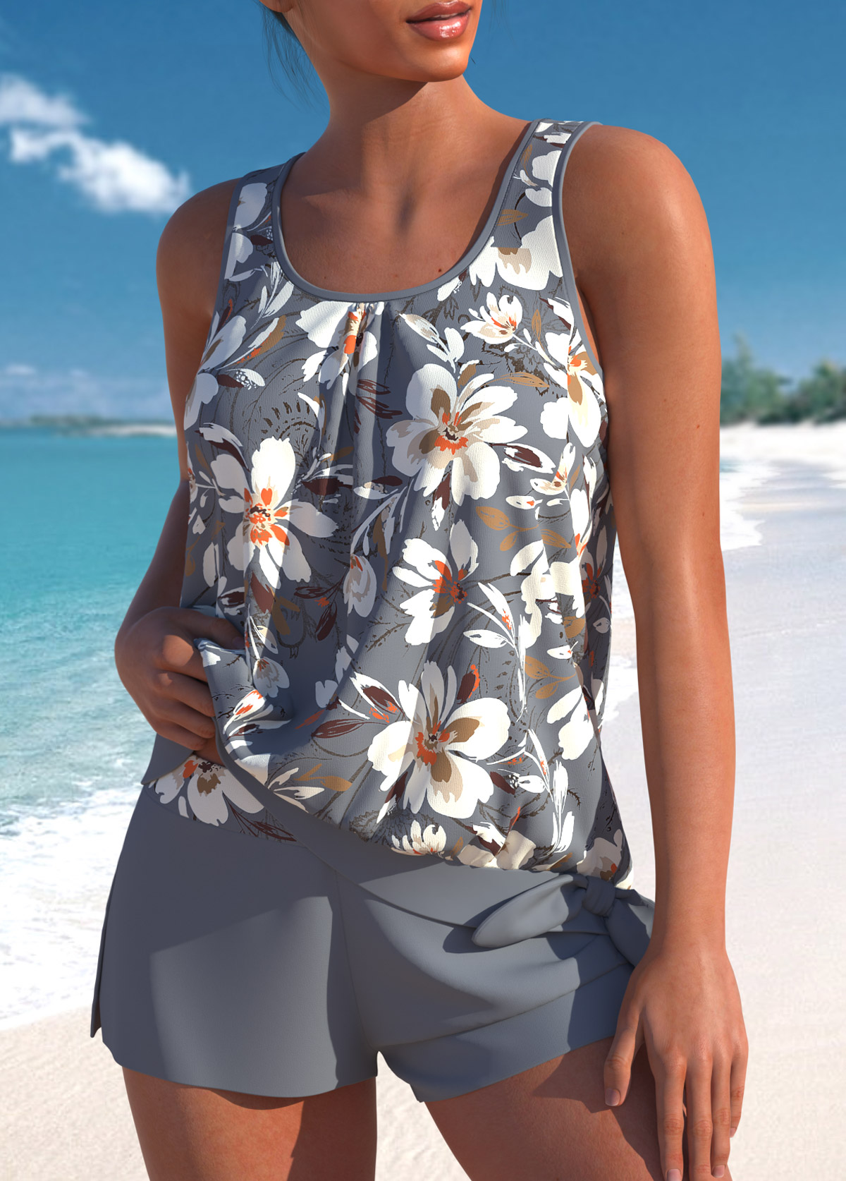 Tummy Coverage Mid Waisted Floral Print Tankini Set