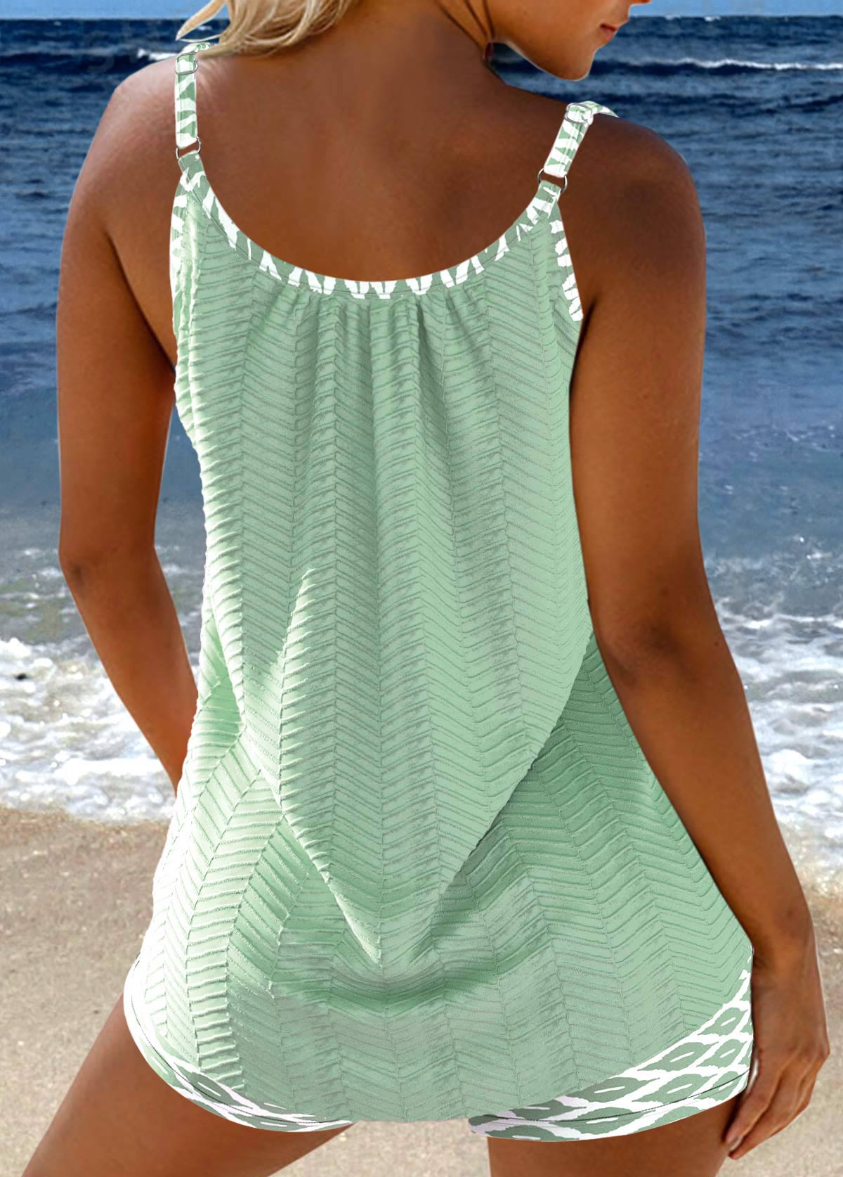 women's clothes / Swimwear / Tankinis / Tankini Sets  /  Bowknot Geometric Print Sage Green Tankini Set