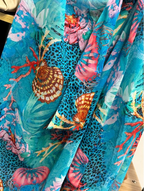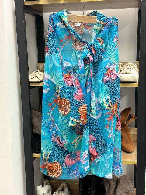 Embrace the waves with this ocean-inspired sarong, adorned with a vibrant marine life print. Its comfortable waistband and Capri length offer a perfect fit, while the flowing fabric adds a breezy touch, making it your ideal companion for relaxing by the beach.