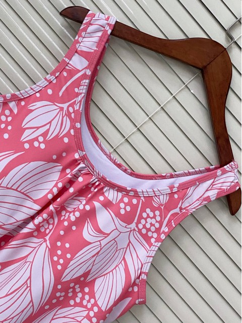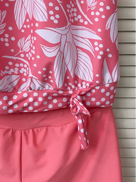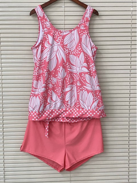 Home  /  Swimwear  /  Tankinis  /  Tankini Sets  /  Bowknot Mid Waisted Floral Print Coral Tankini Set