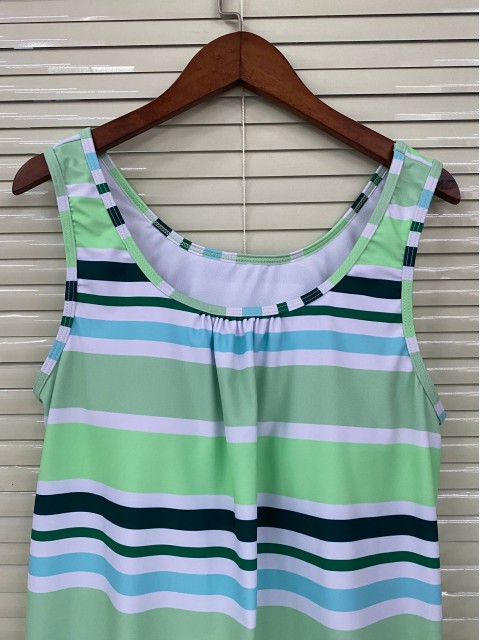 Tummy Coverage Mid Waisted Striped Light Blue Tankini Set