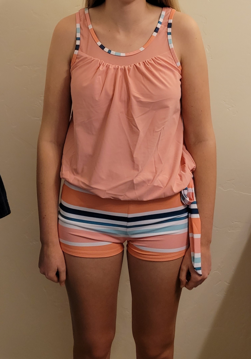 Tummy Coverage Mid Waisted Striped Light Blue Tankini Set