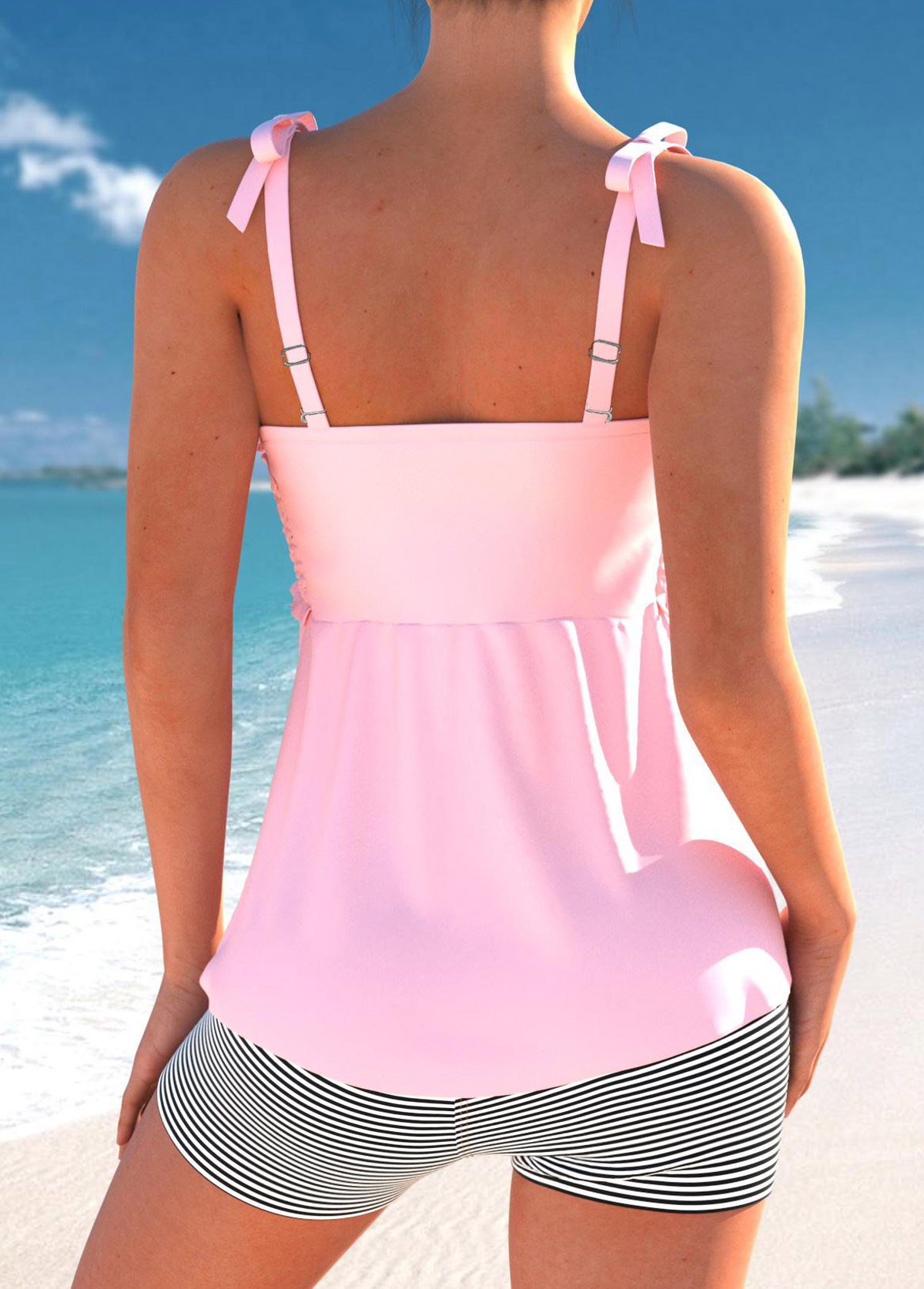 women's clothes / Swimwear / Tankinis / Tankini Sets  /  Bowknot Patchwork Striped Pink Tankini Set