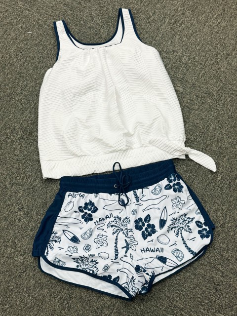 Home  /  Swimwear  /  Tankinis  /  Tankini Sets  /  Bowknot Tropical Plants Print Pink Tankini Set