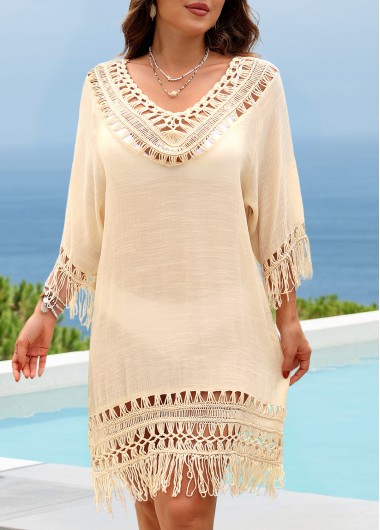 Added Successfully Beige V Neck Hollow Out Cover Up