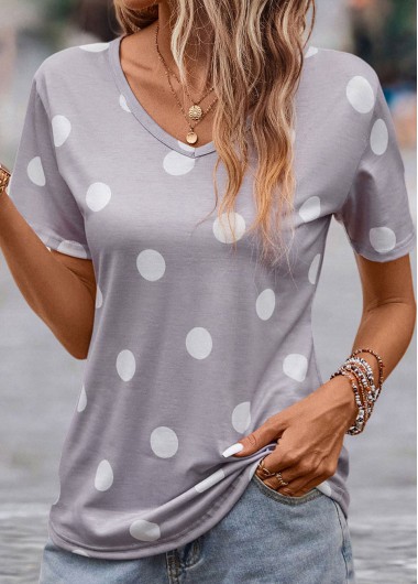 Added Successfully Grey Lightweight Polka Dot Short Sleeve T Shirt