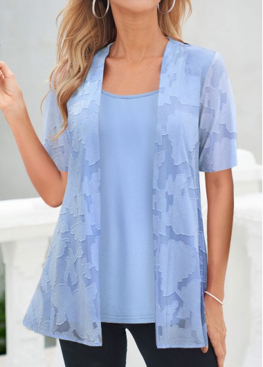 Added Successfully Cyan Floral Print Short Sleeve Fake Two Piece Twinset