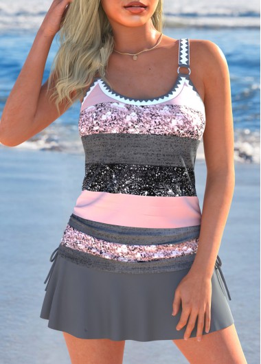 Added Successfully Cut Out Grey Drawstring Tankini Set