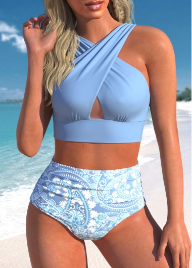 Added Successfully Criss Cross Tribal Print Dusty Blue Bikini Top
