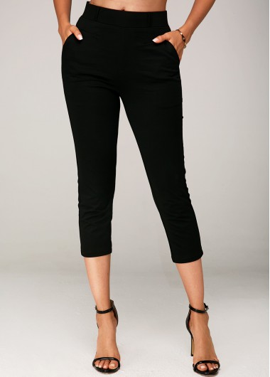 Added Successfully Side Pocket Black Elastic Waist Crop Pants