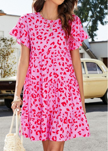 Light Coffee Fake 2in1 Leopard A Line Dress