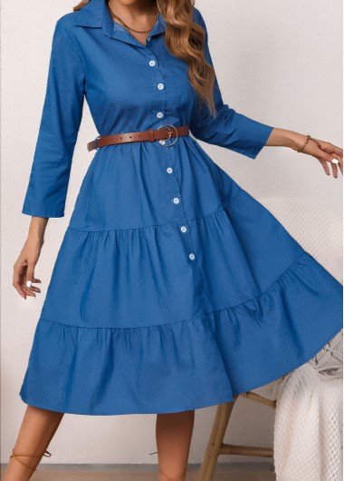 Denim Blue Button Long Sleeve Shirt Collar Dress