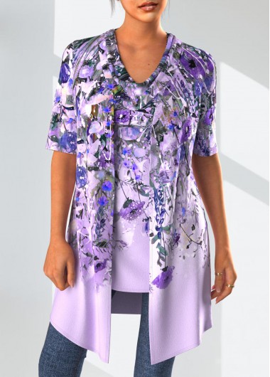 Added Successfully Turquoise Floral Print Half Sleeve Fake Two Piece Twinset