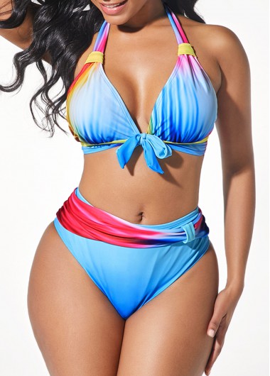 Added Successfully Metal Ring Ombre Multi Color Bikini Top