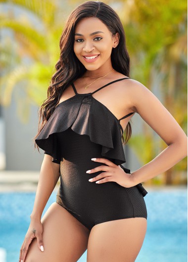 Added Successfully Tie Back Ruffle Overlay One Piece Swimwear
