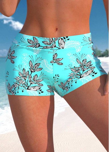 Added Successfully Mid Waisted Leaf Print Cyan Swim Shorts